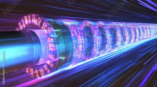 Futuristic Data Stream Through Illuminated Tube