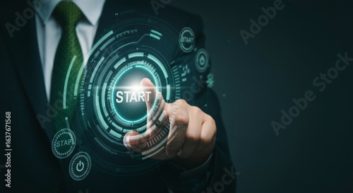 Futuristic Digital Interface Start Button Technology Concept.