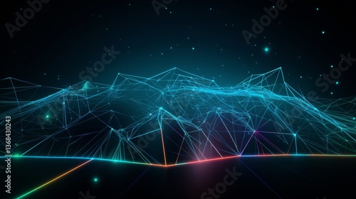 Futuristic digital landscape with neon lines.