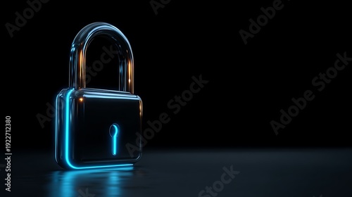 Futuristic Digital Padlock with Vibrant Blue and Orange Glow on a Dark Reflective Surface, Symbolizing Cybersecurity and Secure Data Access.