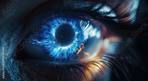 futuristic, eye, closeup, electric, blue, glowing, retina, detail, technology, vision, cyber, digital, innovation, science fiction, abstract, human, pupil, iris, neural, electricity, vibrant, intense, macro, sharp, conceptual, lens, optical, high technology, extreme, energy, modern, design, electrifying, biology, biometric, surreal, artistic