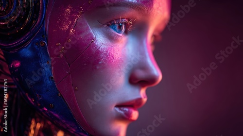 astronaut, space suit, helmet, futuristic, space, science fiction, technology, portrait, female, make-up, glowing, advanced, metallic, cosmic, science, exploration, innovation, pink, blue, neon, detail, closeup, headgear, visual, art, space exploration, universe, adventure, science fiction, detailed, high technology, modern, aesthetic, celestial, starry, imaginative, woman, creative, fashionable