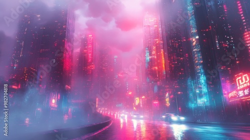 futuristic, fly, car, highway, threaded, tower, skyscraper, glow, holographic, signs, high-coloured, modern, city, future, colours, pollution, skyline, foggy, high, vision, render, effect, life, design, science fiction, urban, aerial, vehicle, fantasy, surreal, concept, tech, science, hover, night time, city landscape, fiction, trail, sprawl, advance