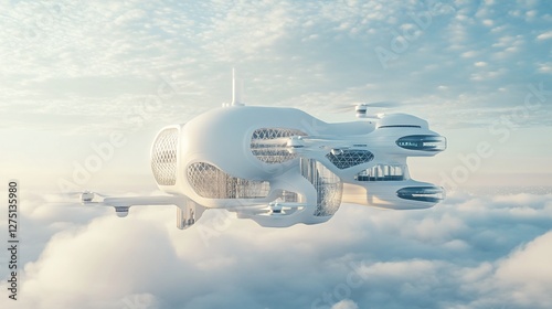 futuristic, flying, structure, building, architecture, cloud, city, travel, transport, modern, design, aircraft, sky, white, drone, innovation, technology, advanced, aerial, journey, transportation, future, urban, development, concept, vision, flight, new, exploration, vehicle, up high, view, floating, high, perspective, air, space