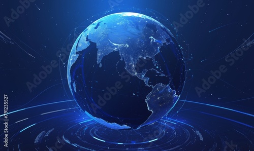 Futuristic Global Data Exchange on Blue-Purple Digital Earth
