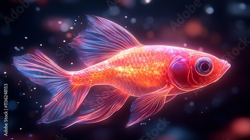 futuristic, glowing, neon, outline, fish, swimming, sleek, vibrant, gradient, background