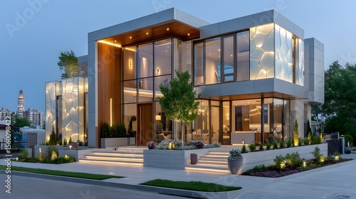 modern, luxury, architecture, glasses, cube, villa, house, facades, lighting, design, glow, exterior, evening, home, futuristic, style, illuminated, urban, building, elegant, contemporary, panel, structure, sky, window, construction, office, apartment, property, residential, street, estate, new, city, real estate, roof, business, front