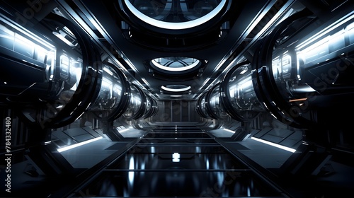space, station, interior, futuristic, science fiction, technology, architecture, hallway, corridor, tunnel, metallic, reflective, sleek, modern, industrial, illuminated, glowing, abstract, minimalist, environment, innovation, future, spacecraft, engineering, design