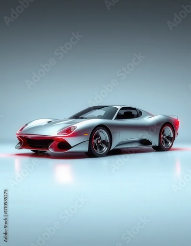 Futuristic Luxury Sports Car with Neon Lights on Minimal Background