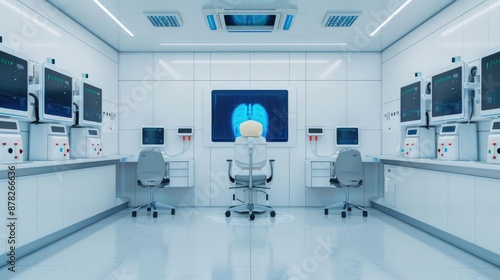 Futuristic medical testing lab, holographic diagnostic systems, advanced health technology, sleek design