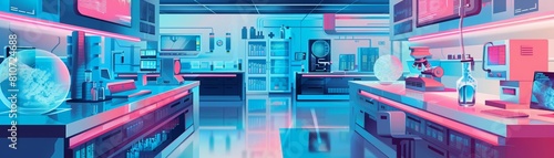 Futuristic Pop art color of a hightech medical lab on National Doctors Day, visualized in futuristic styles, advancing healthcare technology, illustration template