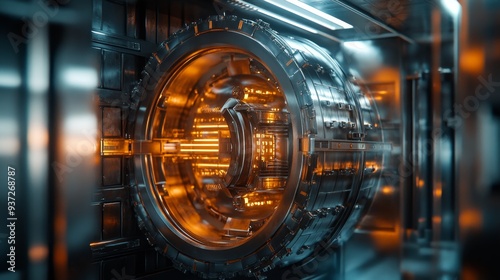 reactor, futuristic, science fiction, technology, industrial, machinery, metal, glowing, orange, blue, background, abstract, design, science, energy, power, innovation, modern, concept, digital artwork, illustration, high technology, industrial design