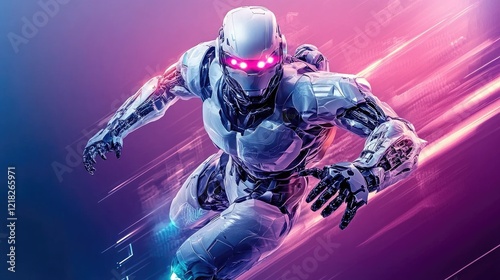 robot, futuristic, running, neon, background, action, science fiction, concept, art, dynamic, technology, cyborg, machine, speed, power, future, motion, movement, energy, light, digital, artificial, intelligence, android, android, metal, gear, chrome, science, fantasy, innovation, abstract, graphic, design, illustration, game, character, three-dimensional, render, image