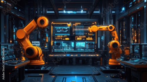 Futuristic Robotic Factory Control Room