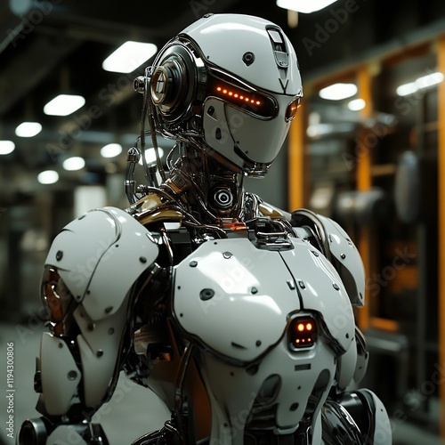 Futuristic Robotic Humanoid Figure in Sci Fi Industrial Setting