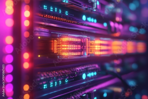 neon, glowing, server, futuristic, cable, rack, digital, computing, center, high, rendering, fiber, optical, three-dimensional, networking, illustration, network, tech, datum, cloud, hardware, cyberspace, computer, art