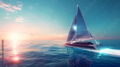 Futuristic Solar Powered Sailboat Cruising on Shimmering Seas