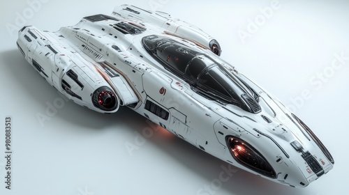 Futuristic spacecraft design with sleek lines and glowing elements.