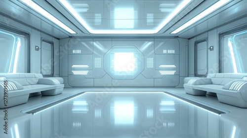 futuristic, spaceship, lounge, interior, design, room, white, sleek, modern, clean, minimalist, technology, science, fiction, space, ship, aircraft, cabin, apartment, home, decor, style, architecture, lighting, bright, glow, elegant, polished, floor, wall, ceiling, seat, couch, panel, window, view, smooth, line, shape, innovation, aesthetic, contemporary, comfort, relaxation
