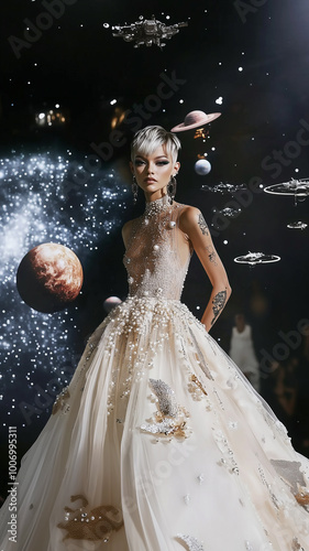 adult, beauty, bridal, bride, catwalk, clothes, collection, sewing, design, dress, elegance, fashion, fashionable, female, girl, look, model, modern, posing, pretty, runway, show, style, stylish, trendy, walk, wedding, week, white, woman, astronaut, astronomy, background, cosmos, dark, discovery, earth, exploration, futuristic, galaxy, moon, planet, science, solar, space, star, system, technology