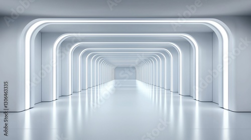 tunnel, futuristic, white, glowing, arch, symmetry, perspective, modern, design, interior, space, high technology, transportation, corridor, neon, sleek, advanced, bright, clean, architecture, contemporary, structure, corporate, minimalistic, innovation, progress, lighting, high speed, future, sterile