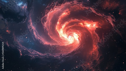 Galactic Swirl and Cosmic Beauty. A mesmerizing spiral galaxy glowing with fiery colors in the vastness of space.