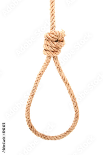 isolated, hanging, white, noose, rope, gallows, background, concept, made, pain, string, violence, linkage, symbol, thread, justice, equipment, hopelessness, lasso, object, execution, attached, punishment, suicide, cut, death, single, fiber, knot, idea