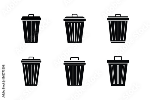 garbage bin, garbage, symbol, vector, illustration, icon, bin, trash, waste, recycling, can, isolated, silhouette, clean, signs, rubbish, ecology, reusing, basket, litter, environment, container, design, pollution, set, environmental, graphic, web, delete, white, dump, reuse, eco, throw, black, pictogram, bucket