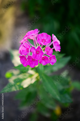 Garden phlox (Phlox paniculata), vivid summer flowers. Blooming branches of phlox in the garden on a sunny day. Soft blurred selective focus.