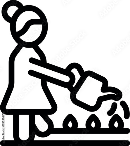 Gardener taking care of plants, watering them with watering can in her garden
