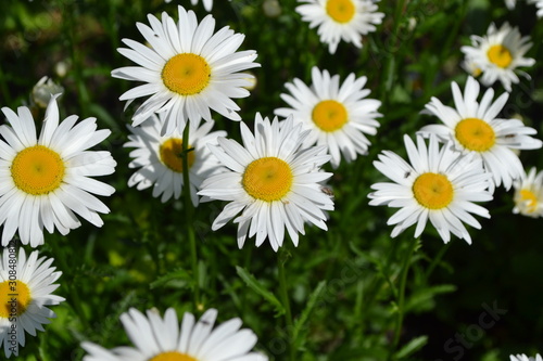 Gardening. Daisy, chamomile. Matricaria. Perennial flowering plant of the Asteraceae family. White