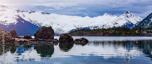 Garibaldi Lake in Canadian Mountain Landscape Nature Background.