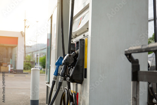 Gasoline station prepare for traveller fill to tank near shop and sun light.