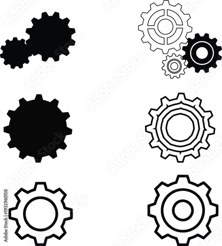 gear, icon, symbol, cog, wheel, mechanical, machine, engineering, design, outline, filled, black, white, isolated, various, style, shape, collection, set, graphic, element, illustration, simple, minimalist, technical, industry, mechanic, robotic, automotive, aerospace, industrial, manufacturing, factory, production, line, art, logotype, signs, symbol, pictogram, clip art, vector, editable, scalable