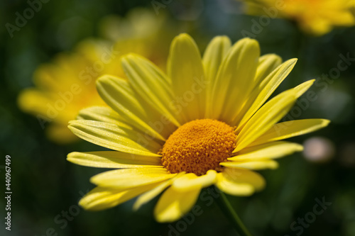 Gelbe Margarite Coleostephus myconis Goldmargerite Buphthalmum salicifolium Farbe Korbblüter orange gelb intensiv Garten dekorativ Sommer Sonne Asteraceae Saat-Wucherblume Glebionis segetum Makro