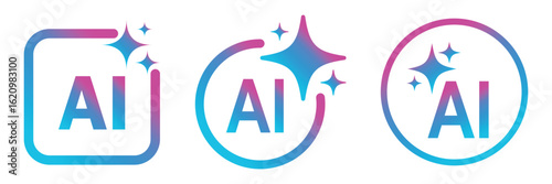 Generate AI icon. Artificial intelligence icons collection. Generative AI logo icon magic sparkle stars symbol. colorful artificial intelligence logo with star symbol. Set of generative AI buttons.