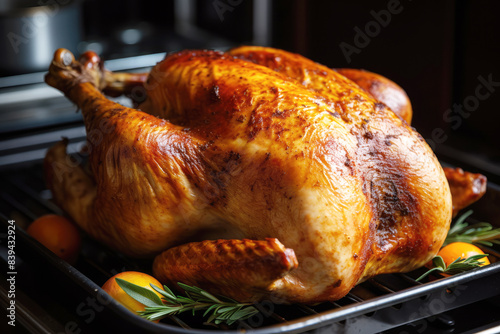 generated Illustration of roast whole turkey or chicken over the oven