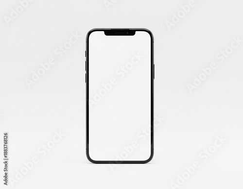 Generative AI 白背景に浮かぶスマートフォンのモックアップ 画面は真っ白のクリーンデザイン