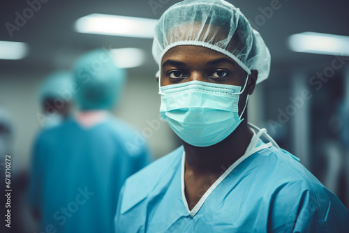 Generative AI portrait of young experienced doc medicine worker viral operation room clinic