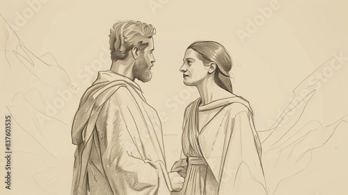genesis, journey, well, union, marriage, divine, guidance, biblical, illustration, beige, background, copy space, spiritual, faith, theme, religious, depiction, holy