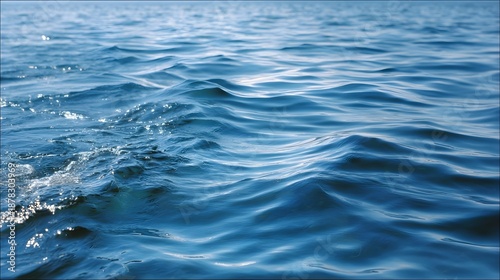 Gentle blue ocean waves shimmer with sunlight on a calm sea surface