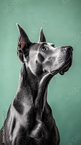 Gentle great dane in soft green background pet photography