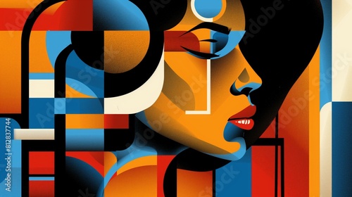 Geometric portrait of a African-American woman with vibrant abstract elements. Woman in the style of Futurism