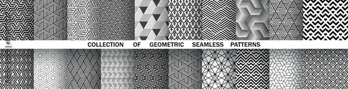 Geometric set of seamless black and white patterns. Simple vector graphics.