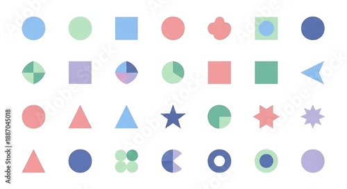 geometric, shape, isolated, white, background, colourful, abstract, design, element, icon, symbol, circle, square, triangle, star, blue, green, red, purple, pink, illustration, graphic, digital, art