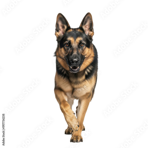 german, shepherd, dog, canino, pet, animal, breed, purebred, domestic, walking, movement, motion, studio, isolated, black, background, white, outline, head, portrait, face, eye, ear, fur, coat, textured, intelligent, loyal, alert, noble, strong, protective, companion, mammal, concept, freedom, pure, natural, cute, photogenic, professional, full body, front view, action, front, paw