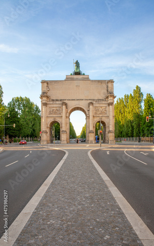 german, bavaria, munich, street, gate, outdoors, day, town, entrance, triumphal, arch, victory, national, landmark, century, past, road, symmetry, city, historical building, nobody, pride, historical, history