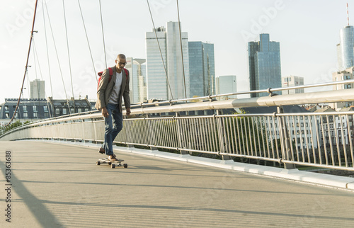frankfurter, people, skateboarding, bridging, skateboarder, skateboard, style, jacket, riding, person, hobby, jean, leisure, blue skies, outdoors, day, urban, city, style