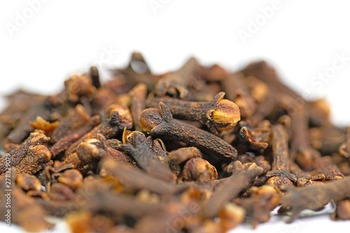 Gewürznelken, Syzygium aromaticum, vor weißem Hintergrund