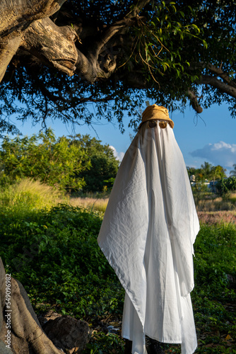 ghost standing around vegetation in broad daylight, at sunset, mexico